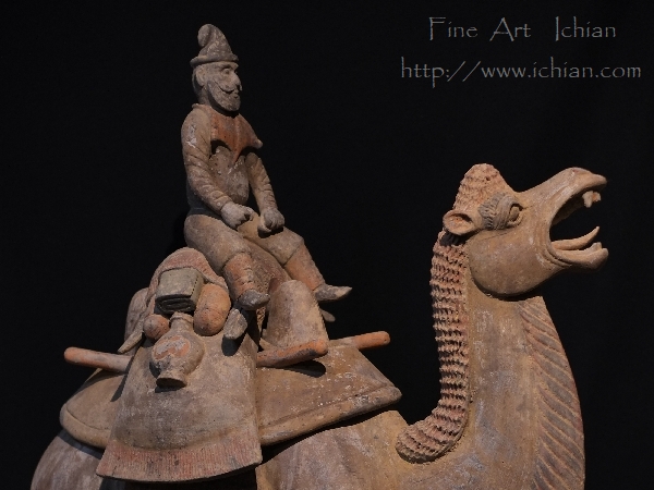 駱駝のつま先から頭部・口の中 人物座像も同じく指先から顔の表情まで細密に造られた庸で最高傑作といっても過言ではない。三彩庸もふくめ加彩庸でもここまで精巧に造形されたものは数少ないのではないか。