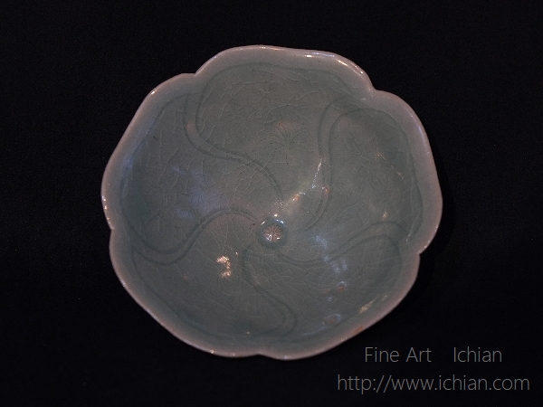線刻の文様が捻文に似た花弁形の青磁茶碗である。全体に薄手に造られており陶工の技量の高さが伺える。非常に珍しい形状の茶碗で希少品。