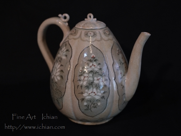 高麗白磁 辰砂象嵌牡丹柳慮文 水注 12世紀後半 完品